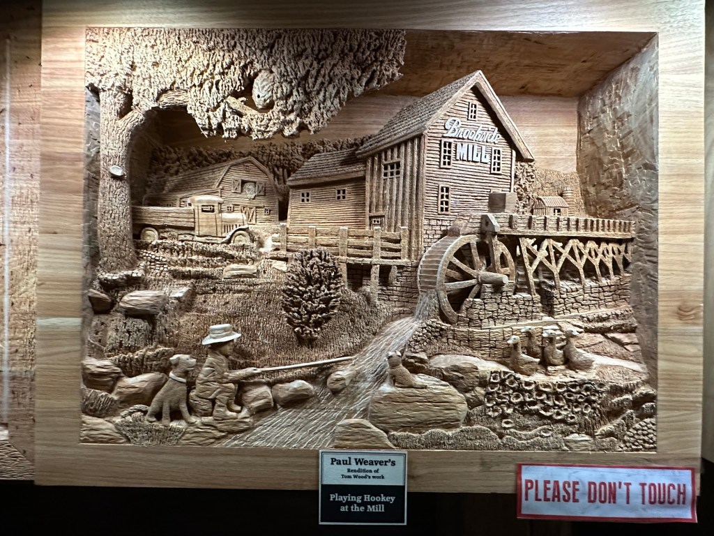 Lehman’s had a stunning collection of scenes carved from wood slabs.