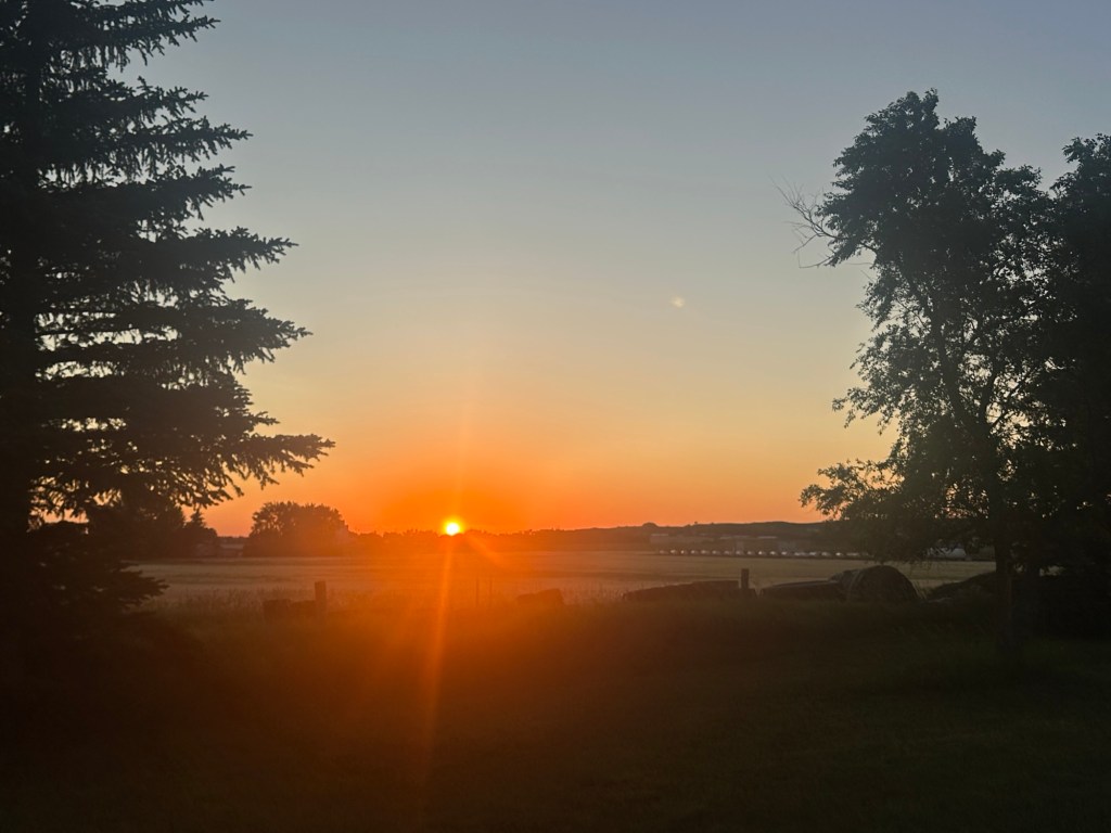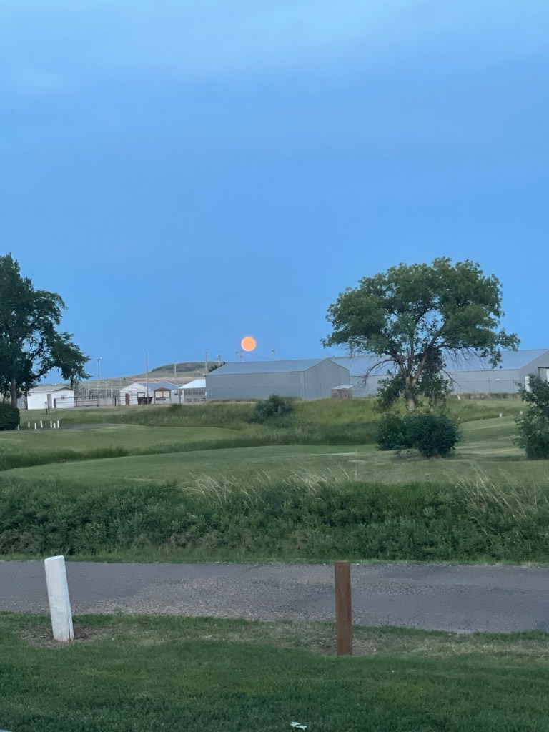 We capped off the day in a campground in Watford City, ND where we were treated to what we call a “Damien Sunset” (full of purple and orange) and the rising of an almost full orange moon.