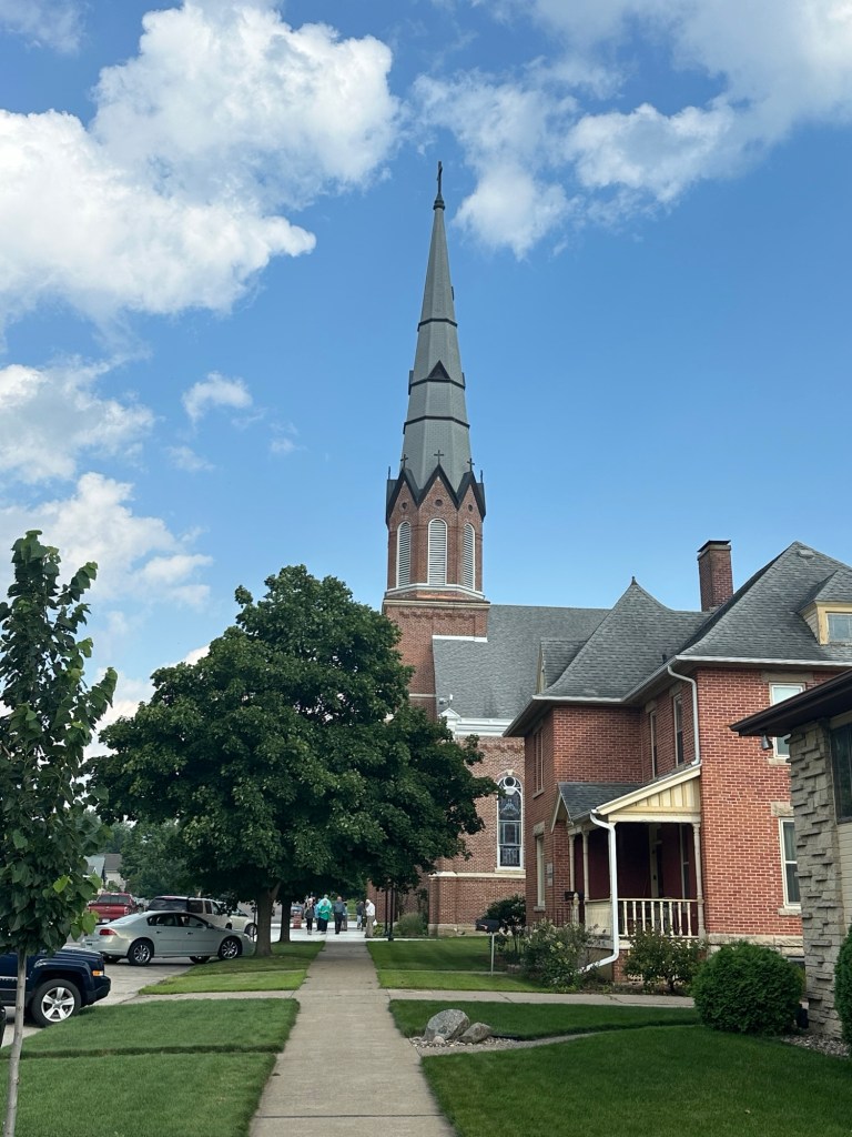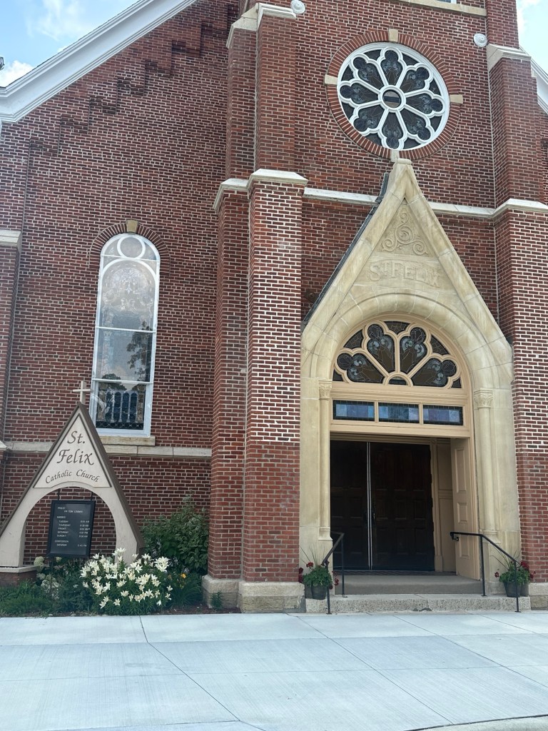 We didn’t spend much time there as we needed to make it to a 4:30 Mass that afternoon, so we headed out to the town of Wabasha.  I love it when you are driving into a town or city and you see the spire(s) of a beautiful church in the distance.  As you get closer to this beautiful church, you’re really hoping that it is the Catholic Church of the town that you are seeing.  This is what was happening as we drove into Wabasha (which is back in the state of Minnesota.)  I was so excited to see that we were making turns to reach this beautiful church that I had seen in the distance.  This beautiful church turned out to be St. Felix.  We easily found a parking spot for the RV on the road and went inside for Mass.