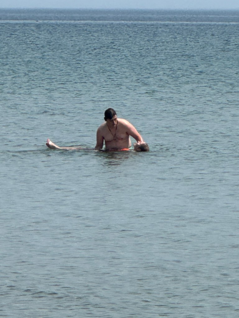 When we got back to the campground, we walked down to the beach to enjoy some relaxing time by the water.  They had some nice wooden multi-person swings right along the beach that we sat in and chatted for a while.  Then it was back to the RV to help Dominic with his math and settle in to finish my book.  It was nice to have an evening that was more relaxing.