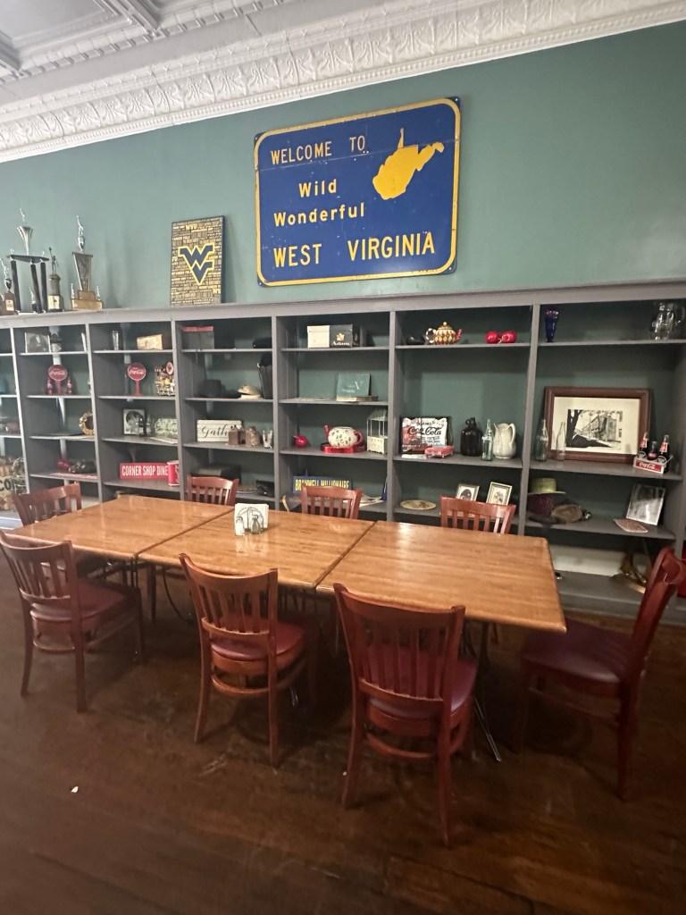 But the reason that we really like to visit Bramwell, is that they have a great, old-fashioned soda shop, The Corner Shop.  Charlie and I stumbled across this place a few years ago when we were taking a long weekend out of town together.  We enjoyed it so much that a few years later, we brought the family back on a Saturday (at their urging (or should I say begging?)) to celebrate Mother’s Day that weekend.  Well, a couple of kids had dealt with a stomach bug earlier that week, and we found out after we made it to The Corner Shop (a 4 hour drive), that the stomach bug had not finished going through our family.  That was a rough drive home with probably 4 kids or so coming down with the stomach bug.  Needless to say, we wanted to make new memories at The Corner Shop!