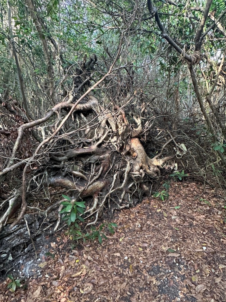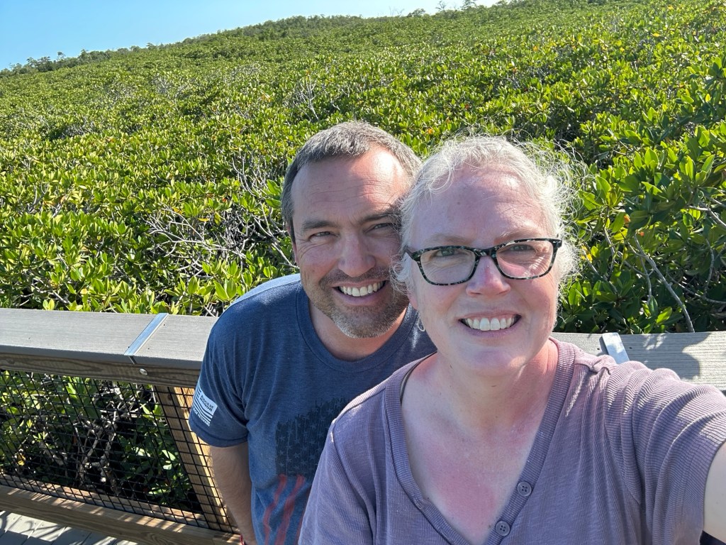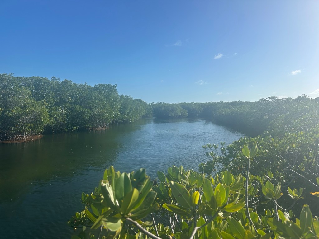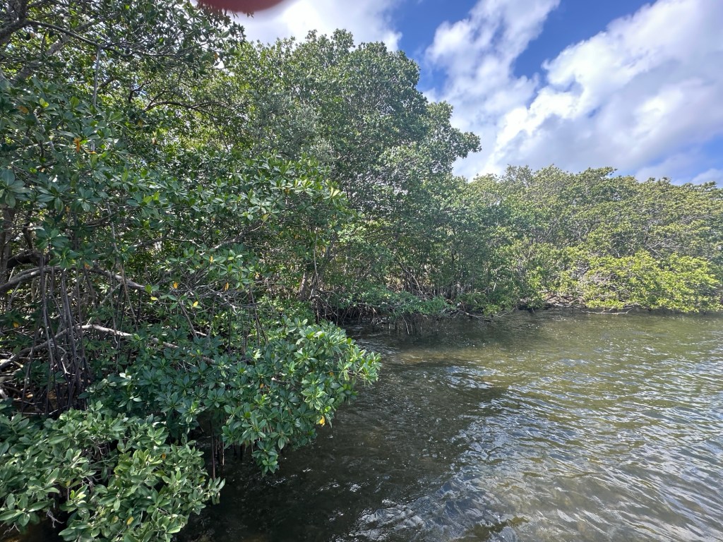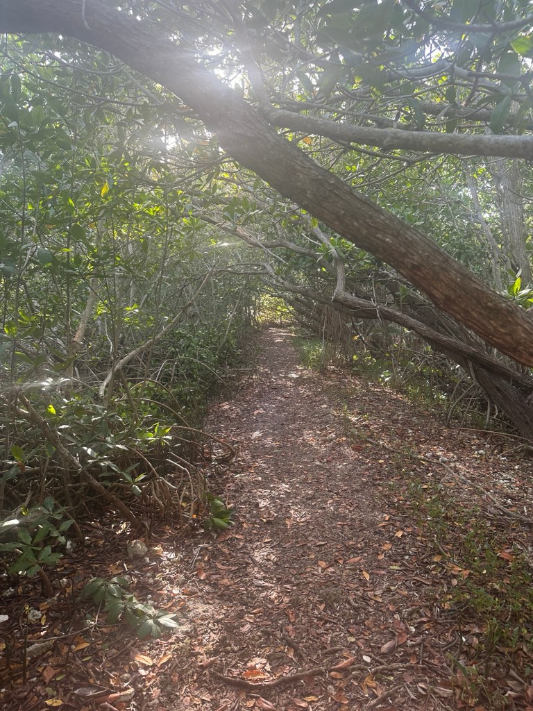 We heard a lot about the necessity to embrace the local culture that plays loud music and learn to just enjoy the music because it will drive you crazy otherwise. Fortunately, no one was playing loud music, and we had a very enjoyable walk along the jetty. I went back into the visitor center to request other hikes, only to find out that without a boat, we had already taken the only hike. I asked about the remaining area along the shoreline that is highlighted in green on the map as being part of the park hoping that maybe we could walk through there but was told that it is all overgrown with mangroves.