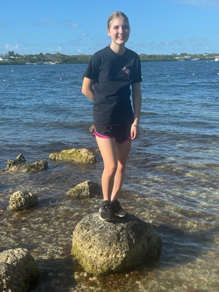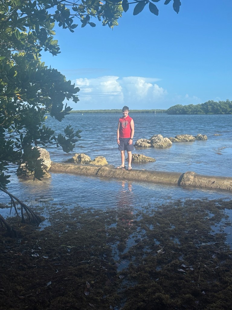 Next we went down to the water and discovered, again, that there wasn’t really much beach. The “beach” was covered in old coral pieces and not comfortable to walk on, even for my kids who go barefoot constantly. They waded into the water with shoes a bit, but in the end we decided not to do any swimming there. I think I’m just going to have to suck it up and go to Miami Beach one day so that the kids can actually get some “beach” time.