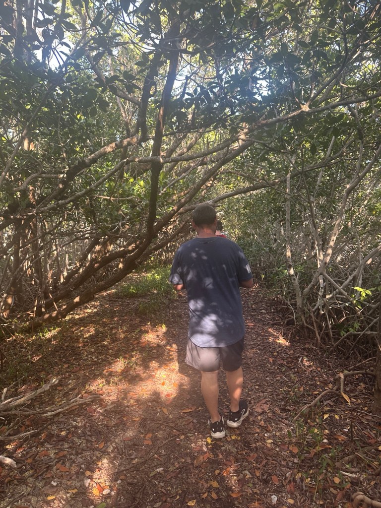 On our drive to Key Largo, I was disappointed that we weren’t able to see more of the water. We finally made it to John Pennekamp Coral Reef State Park and headed to the visitor center to find out what we wanted to see and do. They have lots of boating excursions out to the coral reef as well as kayak/canoe excursions into the canals lined with mangroves. We took a hike on a boardwalk through the mangroves but saw very little wildlife.