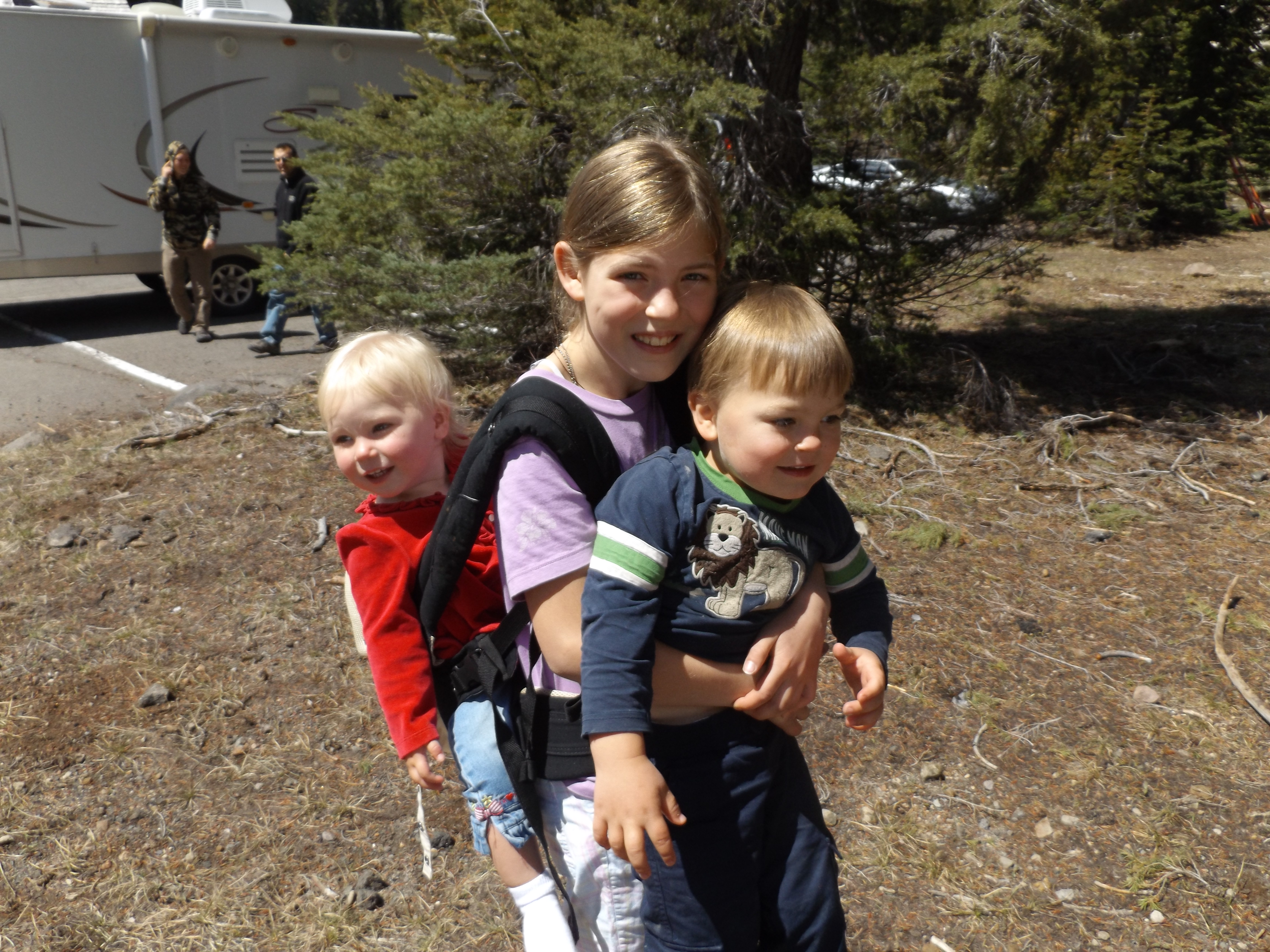 When we got into Crater Lake National Park, I wanted to head to the Visitors’ Center first so that the kids could get there questions about how Crater Lake was formed, how deep it was, etc. answered before actually seeing it. The kids were so excited to see the snow when we arrived at Crater Lake.  We spent a good bit of time at the Visitors’ Center, and several of the kids even decided to do the Junior Ranger program (which is a commitment for us as those things usually take a LOT of time for us to complete – so many little kids want to do it, and they always need a good deal of help). After finishing in the Visitors’ Center, we went out to the camper for lunch. The kids were able to run around and burn off some energy, and we were all looking forward to a 2 mile hike on the rim of Crater Lake.