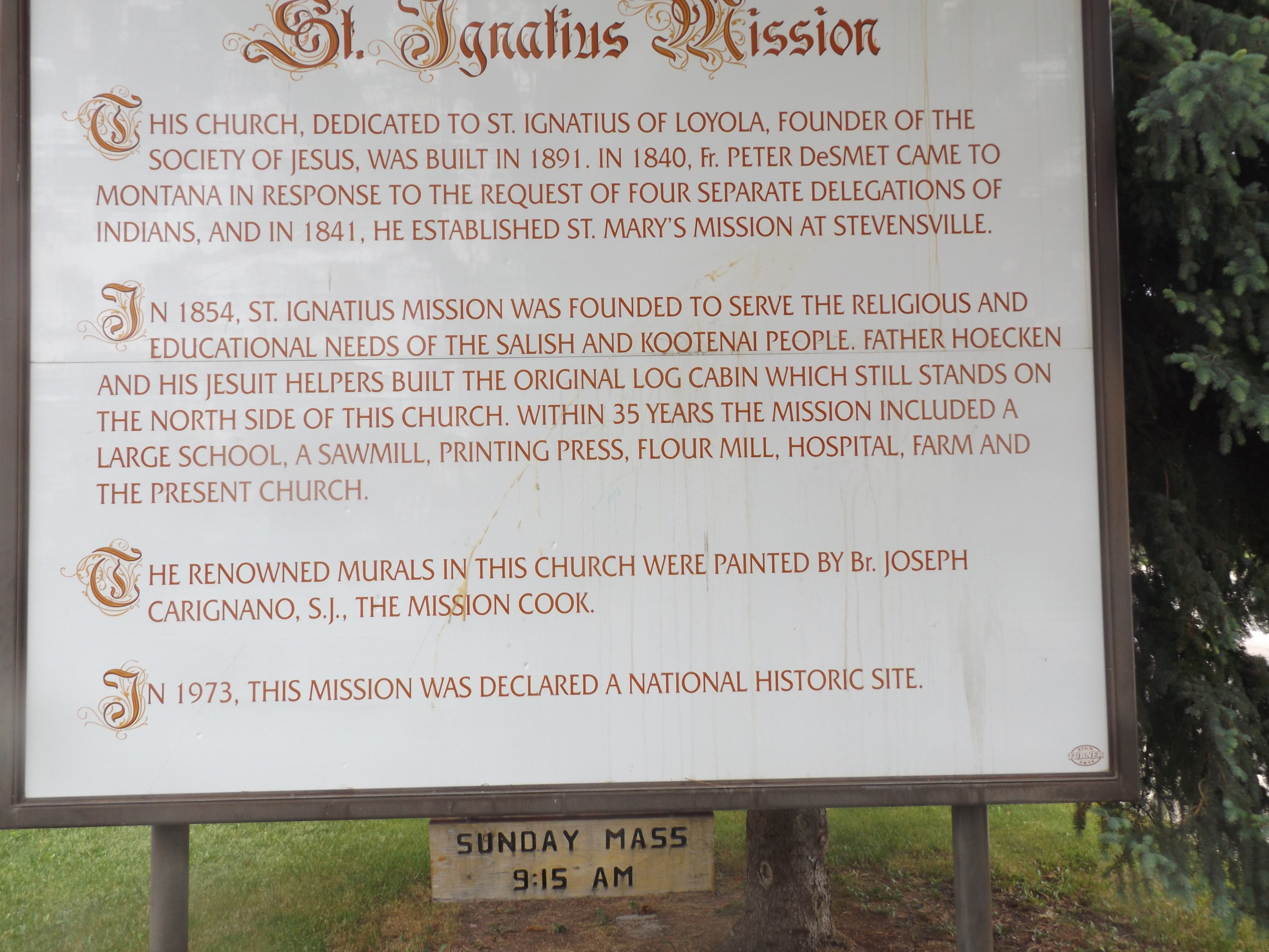 We took a scenic drive by the eastern shore of Flathead Lake. On the way we spotted a new Catholic church named Pope John Paul II. Further down the road, I was reading aloud to the kids when all of a sudden, Charlie took a quick turn. I stopped reading to find out what was going on. He had spotted a sign about the St. Ignatius mission church. We were in the town of St. Ignatius, Montana. He pulled in front of a beautiful, red brick church. I got out to investigate and found that it was open. We all got out of the van to see what we would find.