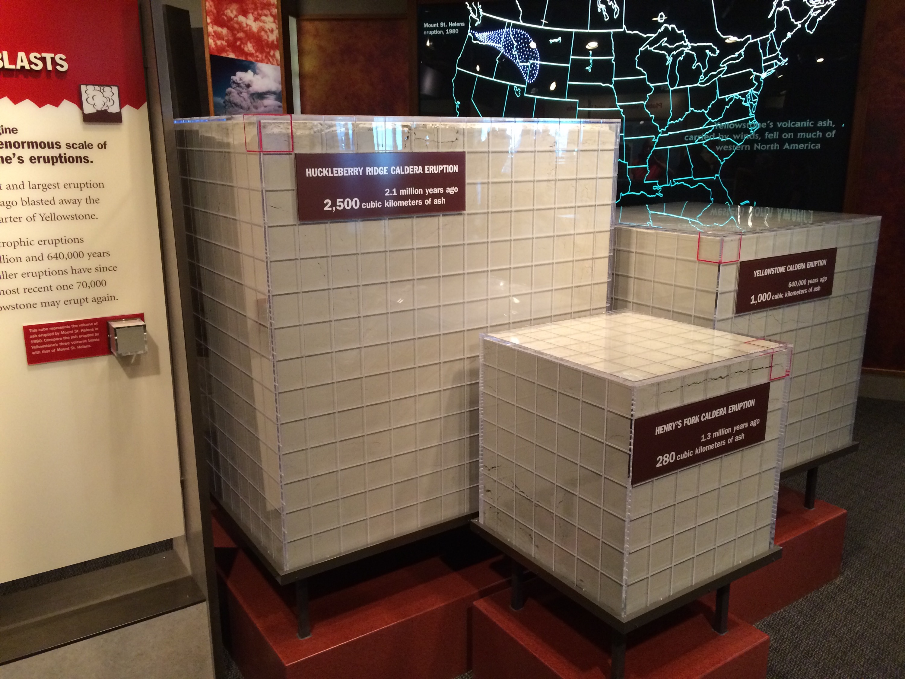 This place is so cool! I really liked Old Faithful. It was really neat. Yellowstone is interesting because, unlike most volcanoes, it has 2 magma chambers instead of just one, making it more destructive. I also found it neat that there are thousands of hot springs, and 2/3 of the world’s geysers are found here in Yellowstone. Even though it is a supervolcano, it has no appearance of it. It just looks like a valley. The rivers, even though they are so far north, they aren’t going to be as cold because there are hot springs feeding into them. Old Faithful has an actual plumbing system. If it didn’t have the plumbing system, it would be just a hot spring. It has a special restriction in the plumbing that allows the pressure to build up. Geysers need four things: water, heat from magma, rhyolite, and silica. I also find it neat that there are so many trees in Yellowstone, and one day they are all going to be gone from Yellowstone for a long time because they will be buried or burned up from the lava and ash from the explosion of the supervolcano that is Yellowstone. The Lodgepole Pines here have reseeded themselves because the only way their seeds come out from the cones is when the glue in the cones is melted by fire. Much of Yellowstone burned in 1988, and many of those acres were naturally reseeded by Lodgepole Pines. The Yellowstone Canyon was cut by the Yellowstone River which eventually leads to the Missouri River. The yellow in the canyon comes from limestone, which is a soft rock allowing itself to be more easily carved by rivers and glaciers. The rim of the caldera is growing. The caldera was created by the volcano, after erupting, collapsing in on itself. The last major explosion at Yellowstone was 640,000 years ago. When Yellowstone last exploded it left 1000 cubic kilometers of ash. When Mt. St. Helens exploded in 1980, it only left 1 cubic kilometer of ash, much less than Yellowstone.