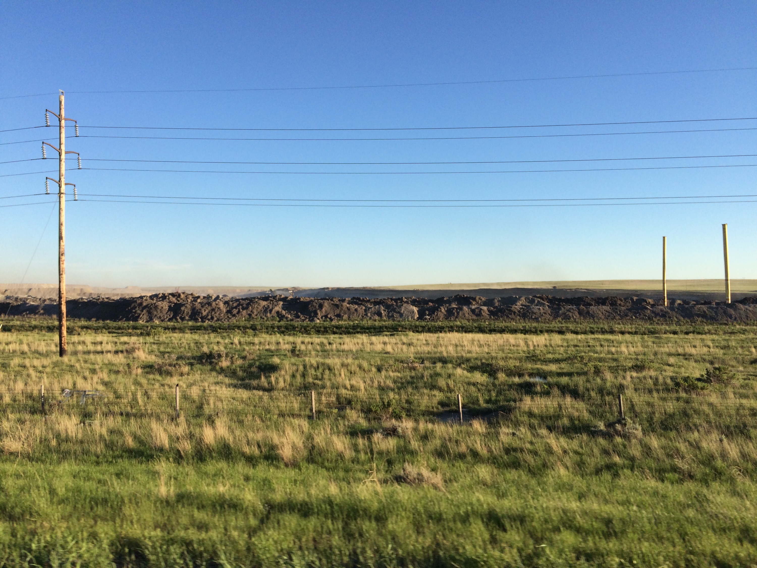 While driving north on Wyoming Hwy 59, we see a lot of trains full of coal. I’ve seen this a lot in West Virginia and southwestern Virginia, but I had no idea there was coal in Wyoming. When we turn onto Hwy 450, we see one sign regarding the Thunder Basin Coal Mine and another sign saying Thunder Basin National Grasslands. At first we are admiring the grasslands, but then we begin to see big piles of dirt around big holes in the ground – a coal mine. They are literally moving the soil to the side to dig down and get the coal out of the ground, surrounded by National Grasslands. It did make me wonder, when I am in a grasslands area with no trees, why they are digging coal out of the ground when they could have solar panels or wind turbines sitting on top of the ground, probably not doing the destruction to the earth that the mining for coal does (sorry for that crazy sentence – hope it makes sense).