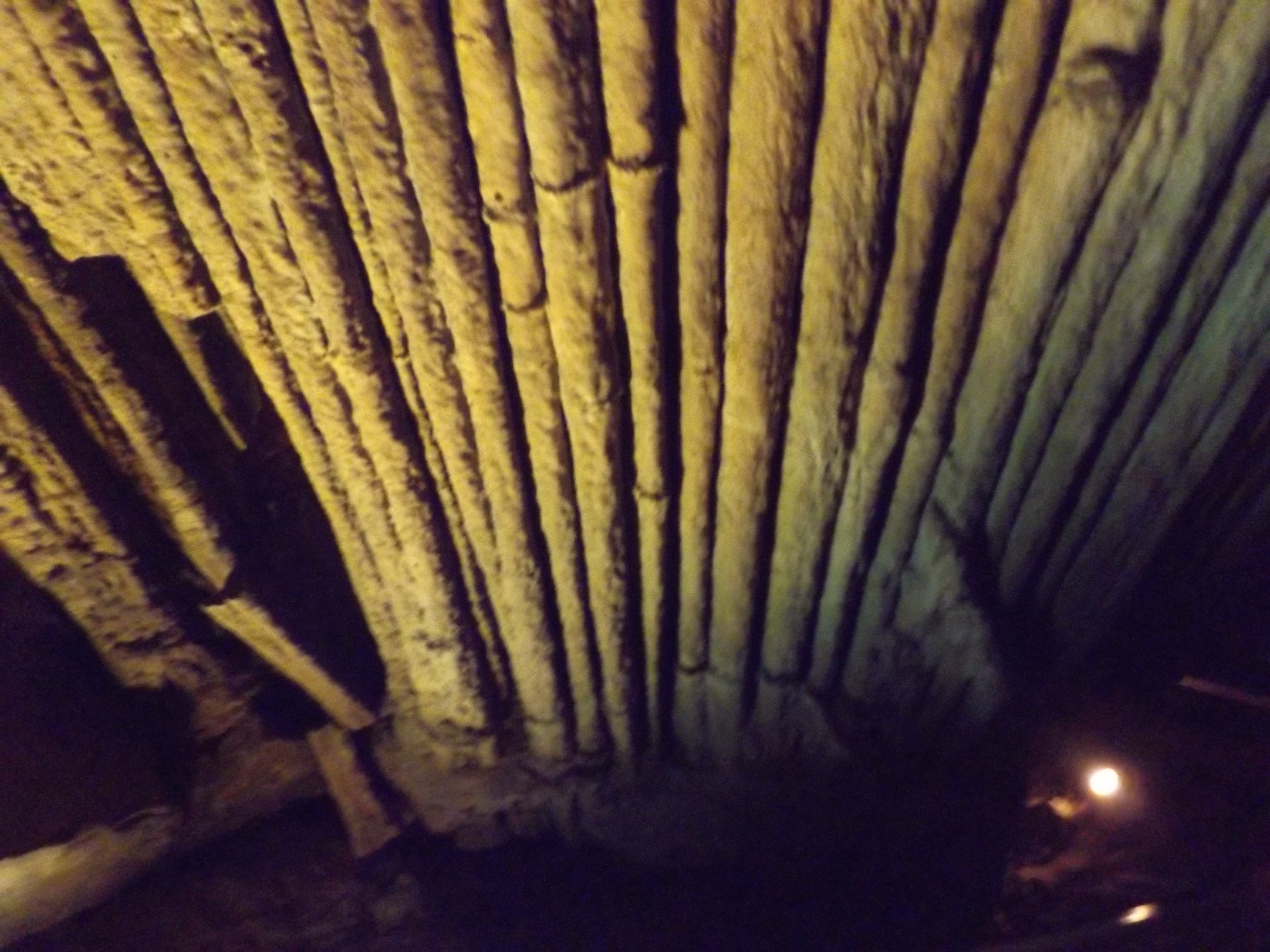 The night eventually ended, and we quickly got up and into the van to get cool and leave. We drove the 45 minutes or so to Mammoth Cave. We had talked of taking turns doing a tour of Mammoth Cave because that would allow us to not take little ones into the cave, but we nixed that idea so that we could get on the road a little quicker. We took the 2 hour Domes and Dripstones tour which took us to the “new” entrance of the cave (built in the 1920s). This required descending about 280 steps into the cave. These passages were fairly narrow, but our guide explained that most of them were natural passages that we were descending through. Only a little blasting had to be done to put that entrance into the cave. The tour opened up into some great big rooms, and we did eventually get to see some beautiful flowstone, stalactites, stalagmites, and other formations. AnaClaire did better on this tour, mainly because I let her get down and walk around some. We all thoroughly enjoyed the tour. Our tour guide even surprised us all by telling us the zip code of our town when we told him where we were from.