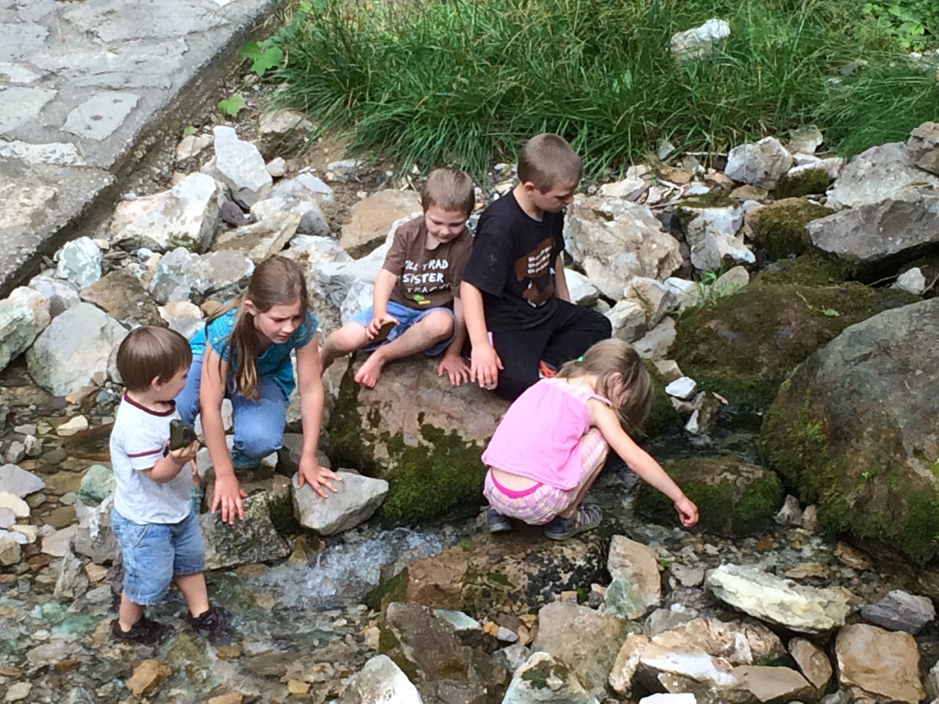 Playing in a stream along a trail