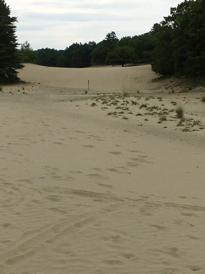 A tour guide took us around an area and told us how a family had purchased this land in the late 1700s. The family began farming the 300 acres of land, but they really used poor land management techniques and over time their topsoil began to erode away leaving patches of silt exposed. The silt had been left behind by the glacial eras. The patches expanded over time until pretty much the entire area of land was covered in the sand-like silt.