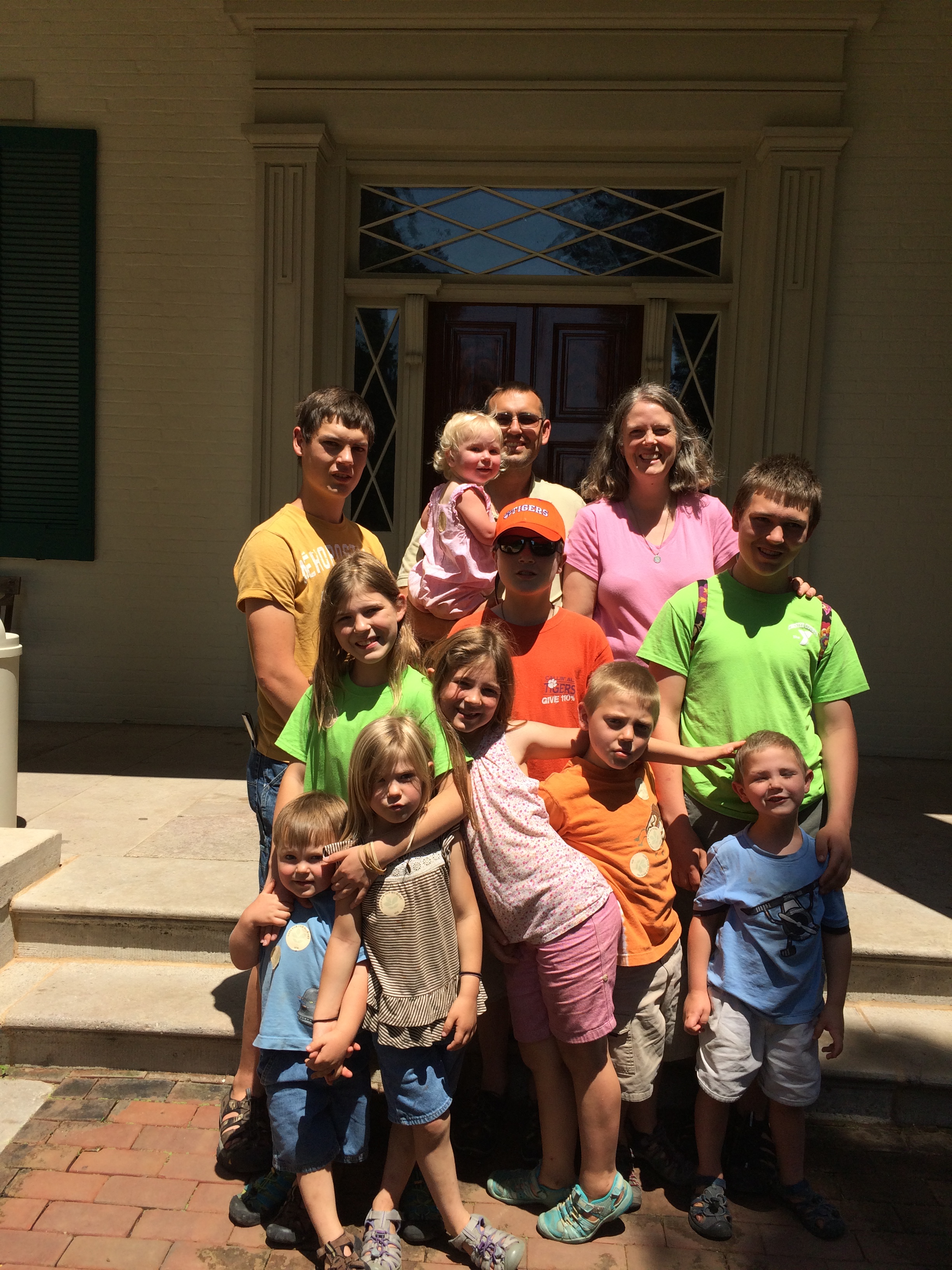 Ten years ago, we took an amazing trip across the country to see several national parks. We had all ten children with us. At the time they were: Ryon (15), Nicholas (13), Nathanael (11), Alex (10), Annette (8), Isaac (7), Amelia (5), Dominic (4), Damien (2), and AnaClaire (1). We had a travel trailer that slept 10 and pulled it with our 15 passenger Chevrolet van. We traveled for 6 weeks and had an amazing time. (You can read all about it here: https://kiddingaroundfarm.com/2015/05/08/5715-the-first-day-by-cpt-america/)