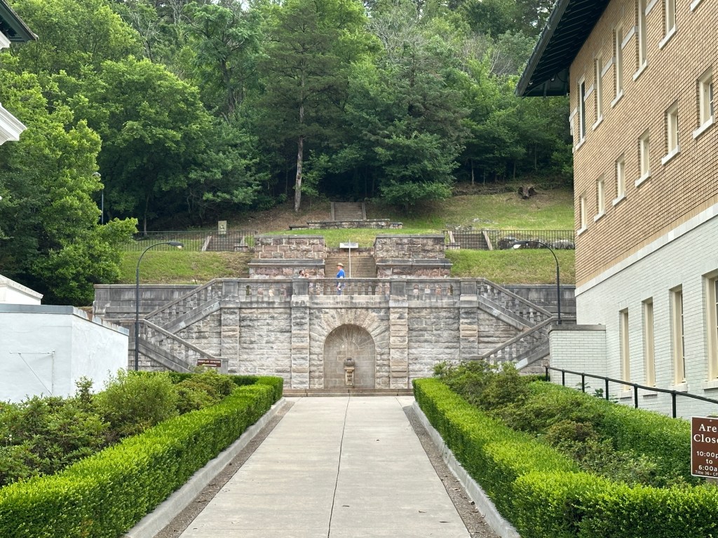 Hot Springs National Park – our first national park stop on our trip! Although I believe I visited here as a child on one of my many trips to Arkansas, I don’t have many memories of it. Charlie and I thought it would be a lot of natural pools of hot springs in a wooded setting, but that isn’t what this park is at all! Much of the park is made up of the historic bathhouse buildings. There were some scenic drives in the hills overlooking the town and definitely some hikes in there that looked like fun, but I wasn’t up for them since I wasn’t feeling great due to this irritating cold.