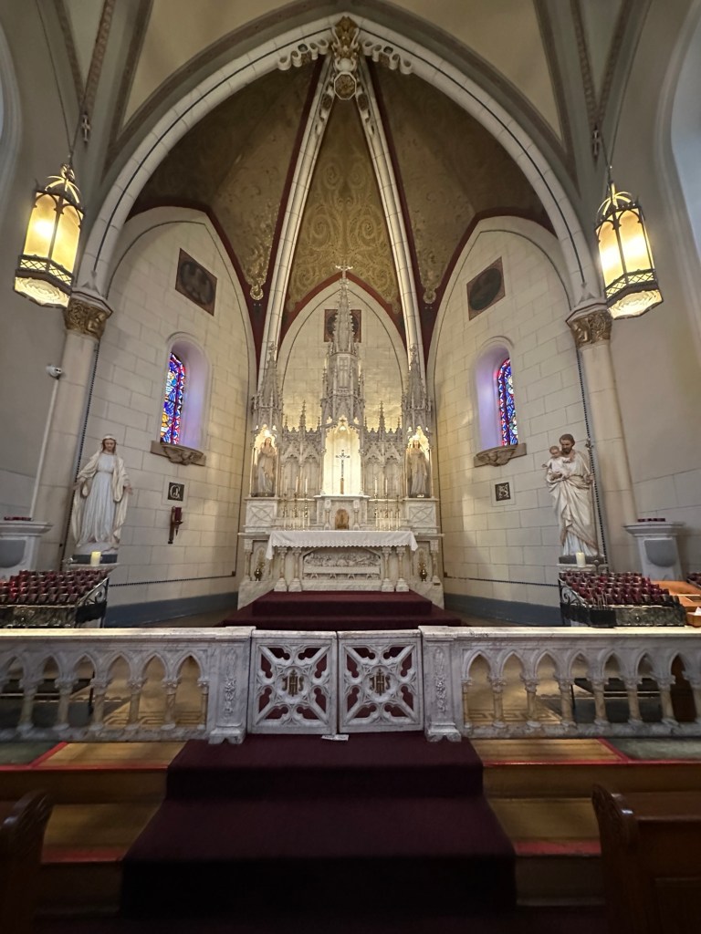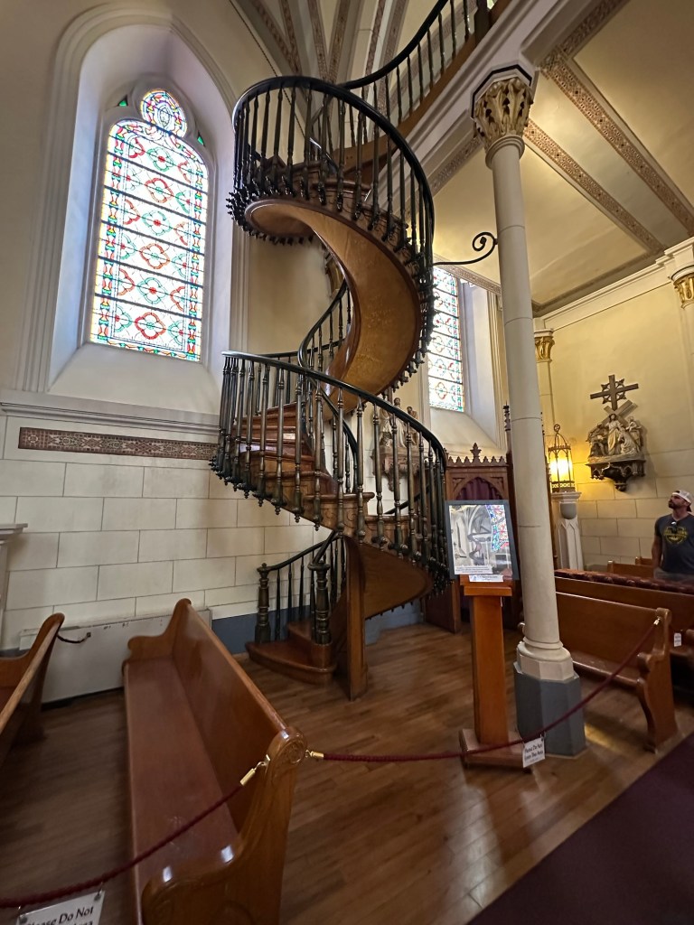 While we made it to the chapel with the RV still intact, we realized that we should have researched parking for an RV better than we did. We ended up parking the RV at a shopping center and driving the Pilot to the chapel. It was so impressive! For those of you not familiar with the story of the miraculous staircase built for the Sisters of Loretto in Santa Fe, NM, I’ll give you a short synopsis.