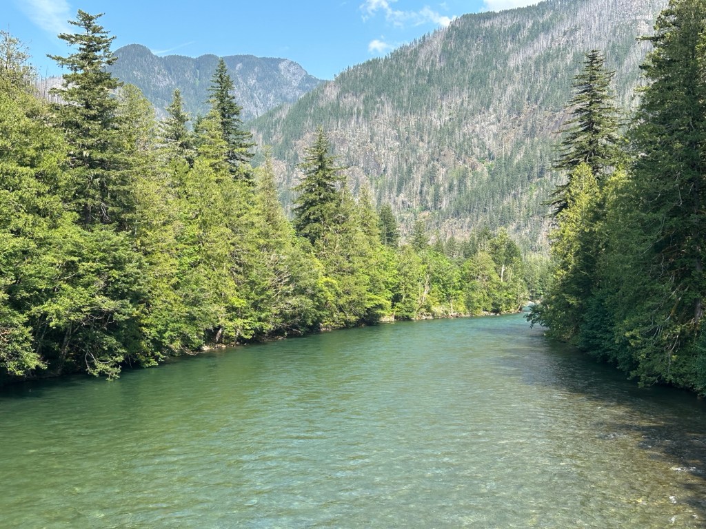 I’m told the waterfall was stunning! We finished driving through the rest of the park and saw several waterfalls just from the road. We pulled over to admire multiple lakes that have been created by dams in North Cascades for the purpose of providing electricity to as far away as the Seattle area.