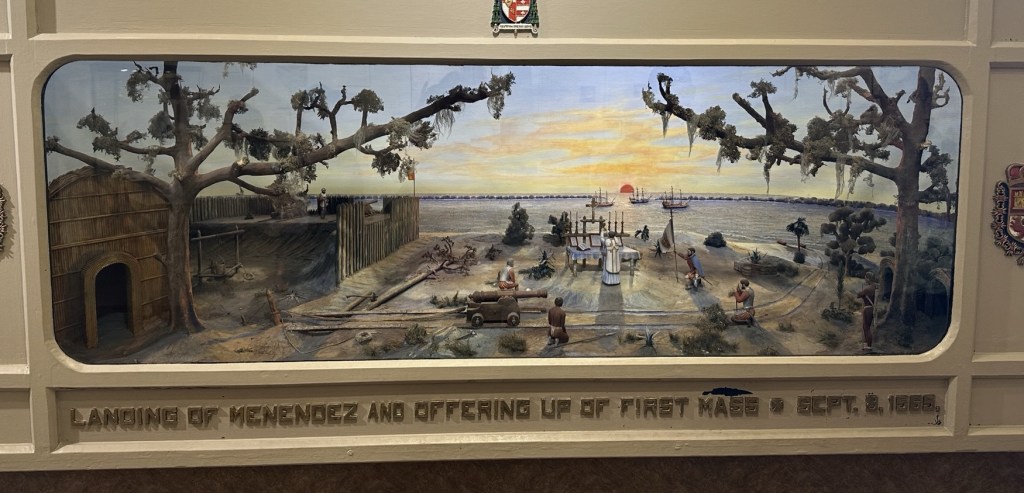 Next we visited the gift shop and then had about 10 minutes in the museum before they closed. The historian who took us through some of the museum was excellent! She showed us an artist’s model rendering of the landing and first Mass at St. Augustine.