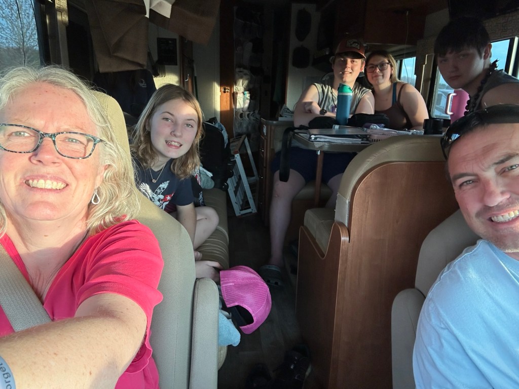 It was late, but that was ok because at least we’re on the road. Annette didn’t get off work with her after-school care job until 6:00, and 2 kids had dentist appointments that afternoon. We were only trying to make it to Yemasee, SC since we still have our campground membership and could stay there for free. After our requisite first night meal at Cracker Barrel, we made it to our campground around 10:45p.m. We were definitely a little rusty in our setting up routines, but we only hooked up to power that night, so it was fine. Following the chaos of getting 8 people ready for bed in a tight space, we finally settled in and had a great night’s sleep.