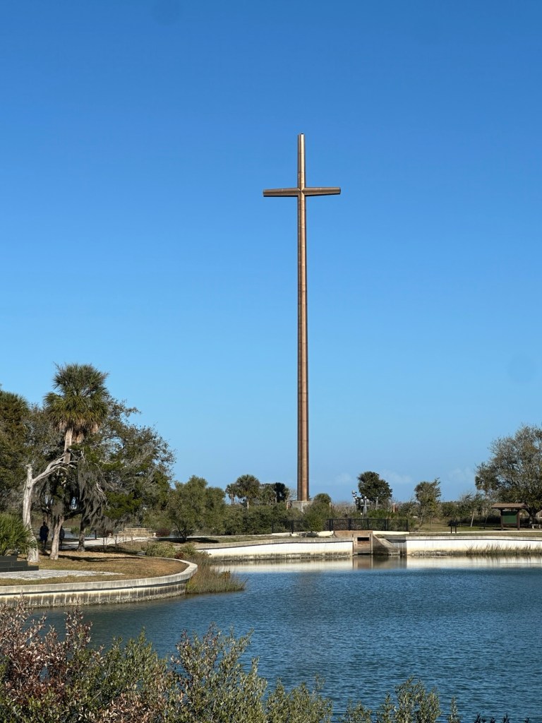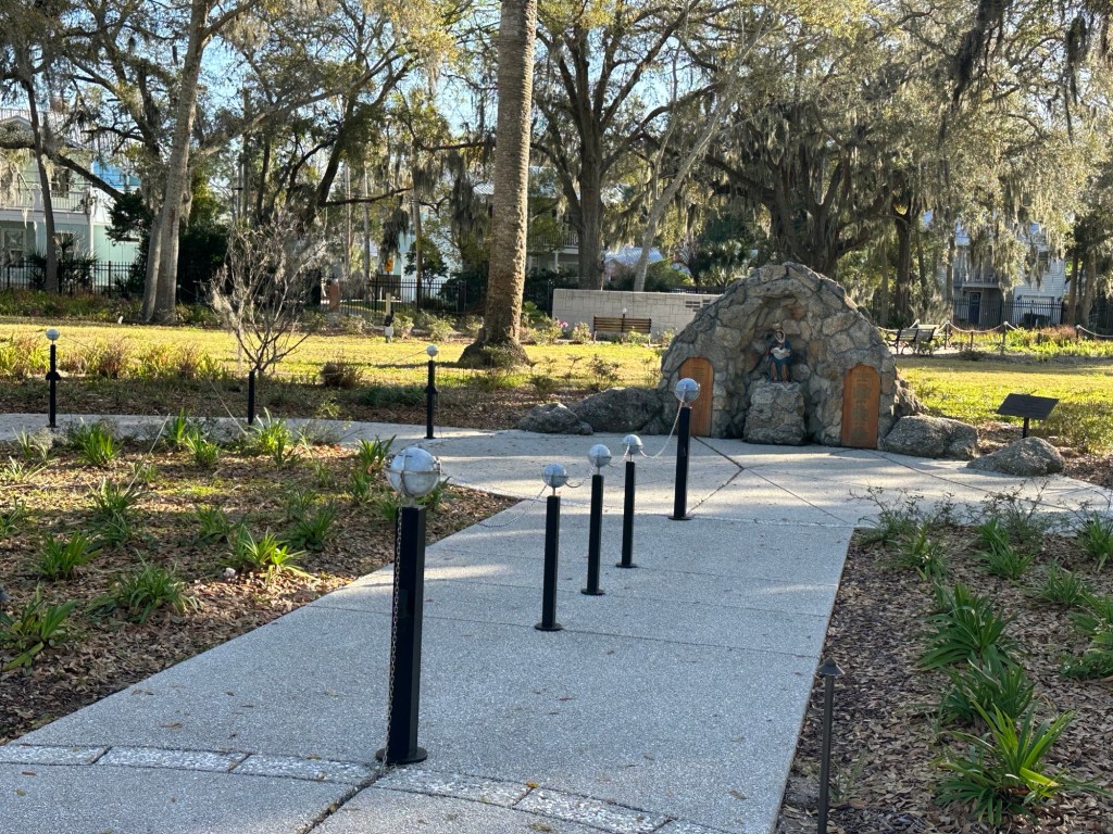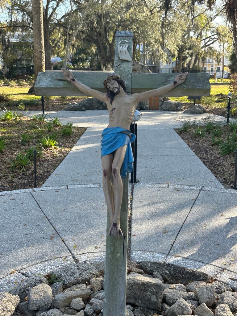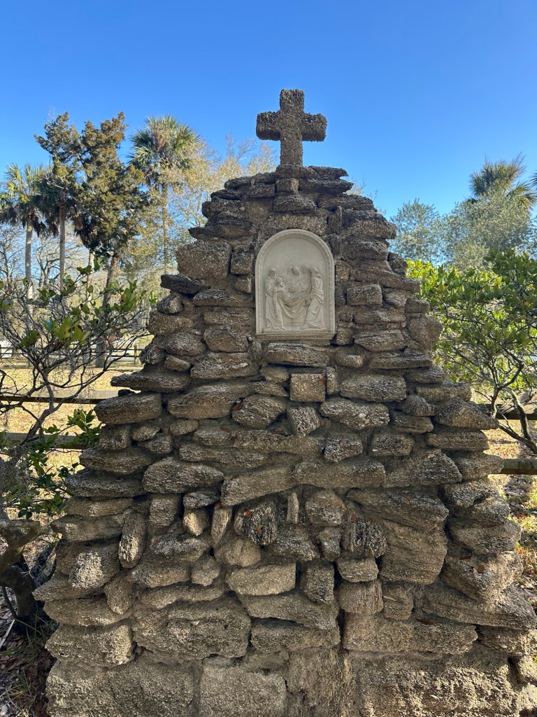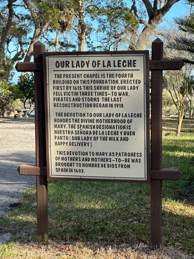 Our reservations in Miami didn’t start until Friday, so we had some time to get there. Still studying American history, I wanted to finally make it to St. Augustine, FL, the site of the first permanent European settlement in what is now the United States. We booked the same campground in Jacksonville that we stayed in last year, but unfortunately it was a good one hour drive to St. Augustine from there. After dropping off the RV and driving to St. Augustine, we arrived about 3:30p.m. That didn’t give us much time to see museums and such, so we prioritized going to El Nombre de Dios mission site.