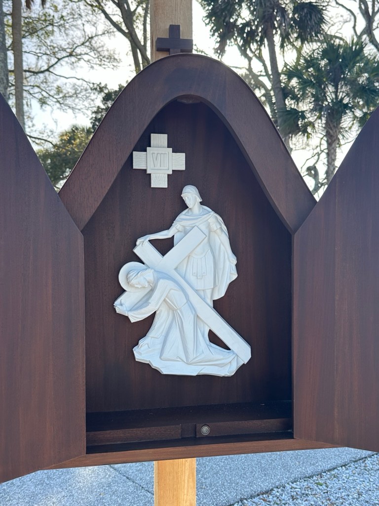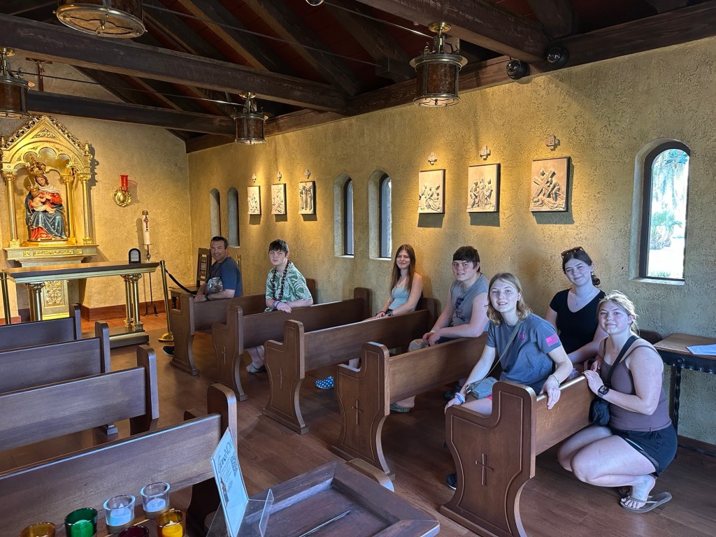 There were two different sets of the Stations of the Cross that we were able to see, a rustic altar built to give visitors an idea of what an early altar may have looked like, an extremely tall cross, and a rosary garden in which we recited the Divine Mercy Chaplet.