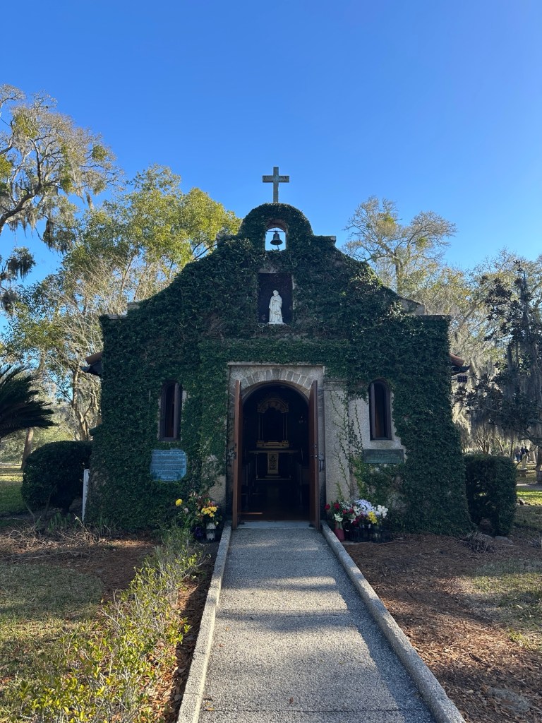 After our too-short visit to the museum, we went outside to walk around the grounds, which were fortunately open until dusk. There were many things to see on the grounds including an earlier chapel of Our Lady of La Leche built in 1918.