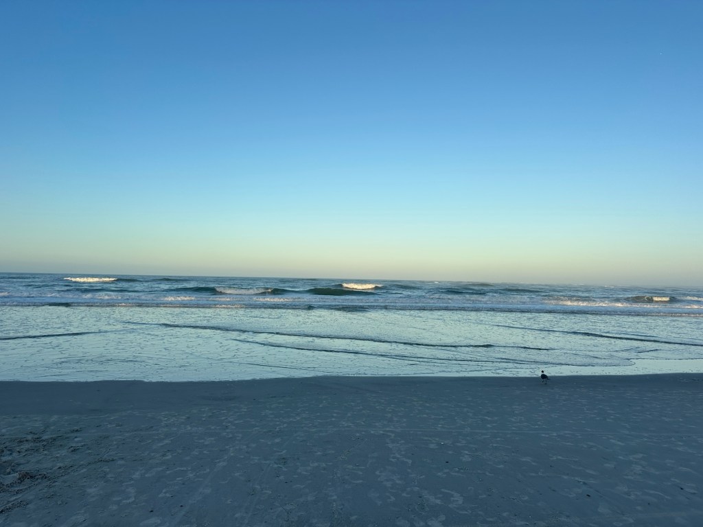 We left Nombre de Dios mission in awe of its beauty and the history that occurred there. Our next stop was the beach – well after a quick run into Publix for ear drops for AnaClaire (she’s had a cold and now was struggling with an ear ache). We found a public beach access and walked down the boardwalk. According to Annette, she, “loves the beach but hates sand,” so she and AnaClaire decided to stay on the boardwalk while the rest of us took a walk on the beach and waded into the too-cold water of the Atlantic Ocean. I am also not a “sand person” (I have too many memories of sleeping in a bed full of sand as a kid), but I do want to experience things with my family, so I put up with the sand present in my shoes later. It was a beautiful evening on the beach and day at St. Augustine.