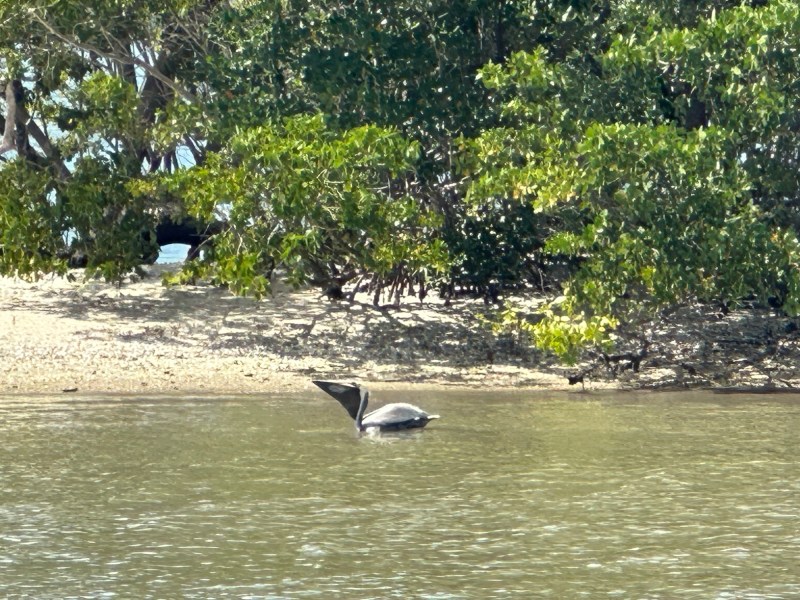 We drove down to Chokoloskee Island and took a picture of us at the Chokoloskee Bay, then turned back and stopped at the Marjorie Stoneman Douglas Visitor Center where we had a picnic and enjoyed seeing the brown pelicans diving into the water for their meal. We looked again for manatees but didn’t have any luck spotting one.