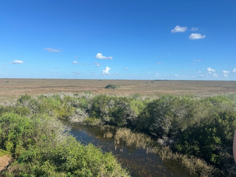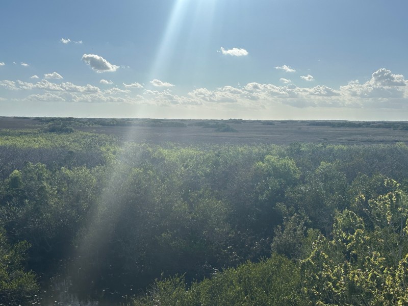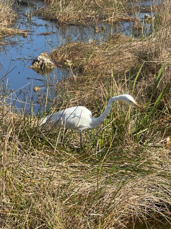 The tram ride gave us lots of alligator viewing opportunities. The most special on the tram ride was seeing at least six baby alligators with their mama. We also saw another group of alligators that consisted of a mama and one and two year old babies. I was surprised that they don’t grow faster than they do. Even the two year olds were still relatively small. We saw many birds: White Ibis, Great Blue Herons, Great Egrets, Snowy Egrets, and Purple Gallinules. Our tour guide was very excited to point out a Great White Heron to us also. He said that he has only seen five Great White Herons in the eight years he has worked at the Everglades. Knowing that, I was extra excited for the opportunity to see one!