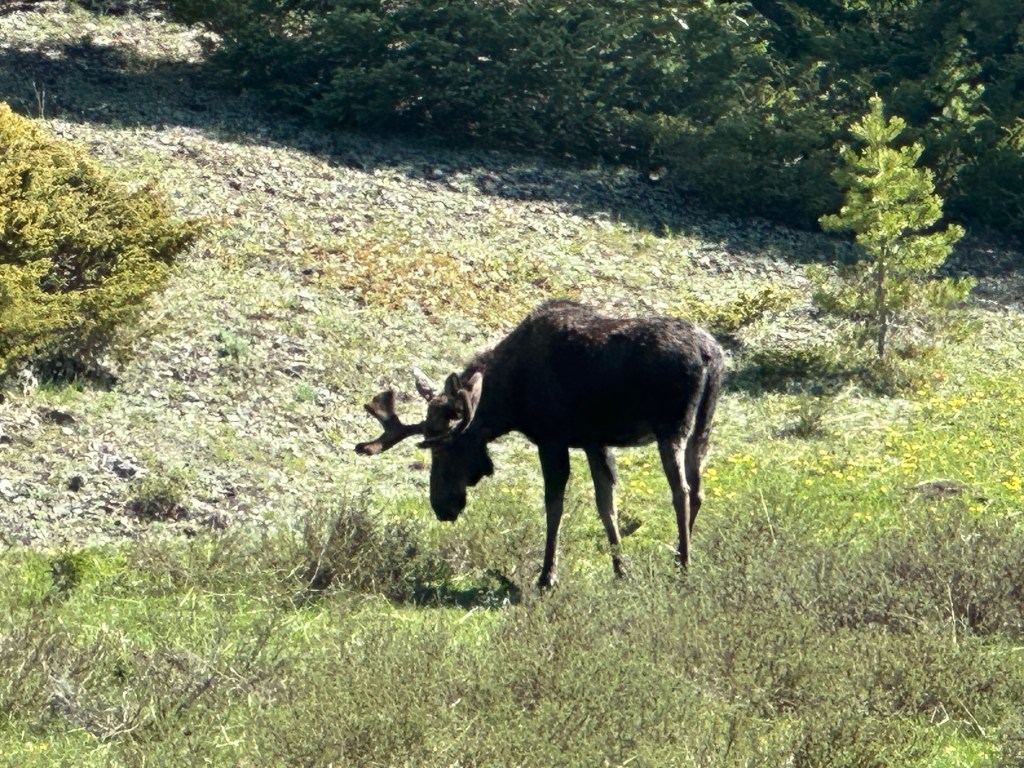 Soon after entering the park, we were treated to the sight of a bull moose. I had waited weeks to see one moose on our trip 10 years ago and hadn’t been blessed to see any when we were in Maine. By the end of our day in the park, we had spotted 7 moose: 2 bull, 2 cows, and 3 babies! What a way to start our trip in the West! We also saw a few female elk, mule deer, and a coyote.